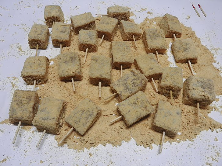 早期的「綠豆軟糕」是小時候童玩店必擺的項目之一,那時是綠豆軟糕裡插著牙籤,分為原色與紅色兩種,抽1次1角若抽出來是原色則沒中只能吃原來那一塊,若抽出來是紅色則可再抽一次,若抽出來還是紅色則可再抽一次,直至抽到原色為止,這就是所謂兒時的樂趣抽抽樂!