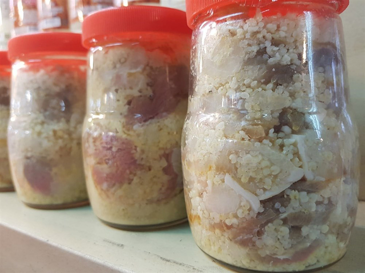 喜烙是一種裝在大罐中的食物,是原住民特色料理。通常以熟飯(如小米飯)、魚乾、豬肉、地瓜、野菜等混合後製成。這些食材會放入陶罐或竹編容器中,經密封儲存、煙燻、發酵或覆土保存,可保存數週至數月。不只方便食用的糧食,更是家族記憶的容器、歲時儲備糧、祖靈共享的聖食,展現了傳統飲食智慧與在地文化體驗。