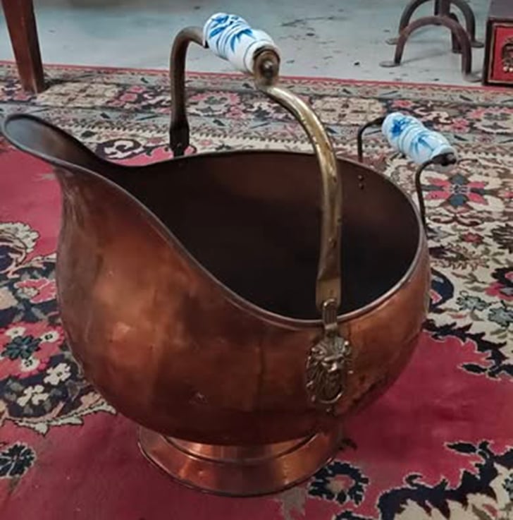 這就是以前用來搬運或盛裝燃燒的木炭,或是用來裝飾爐火的老式炭盆,也稱為炭斗。
