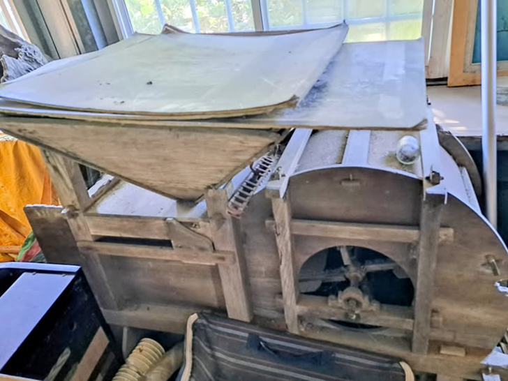 這就是以前在農忙季節最倚賴的風榖機。在現代農機設備出現之前,它可是農家收穫後不可或缺的農業機械。