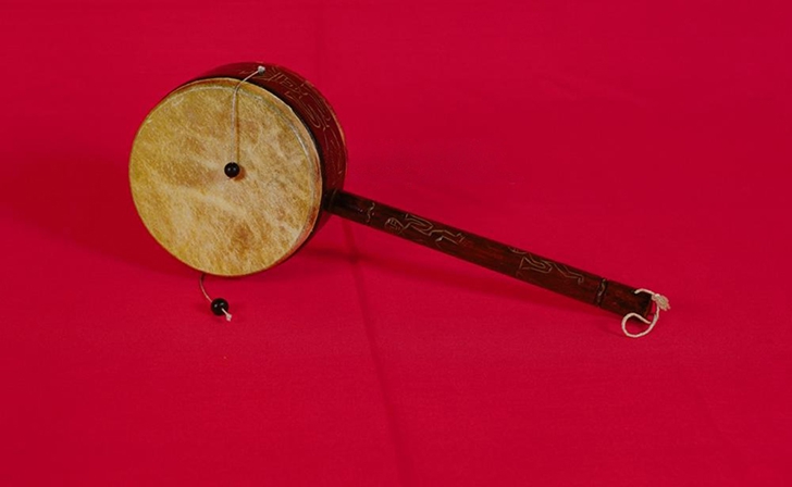 波浪鼓是早期臺灣相當普遍的嬰幼兒玩具,多以木頭為鼓身,鼓面使用薄皮或紙張製成,兩側繫有細繩並連接小珠。當嬰兒自行握持或由照顧者轉動鼓柄時,小珠會隨著轉動來回敲擊鼓面,發出清脆、有節奏的聲響,用以吸引嬰兒注意力並達到安撫效果。由於結構簡單、不需電力,也不易損壞,波浪鼓常被視為適合嬰幼兒的入門玩具,不僅能刺激聽覺發展,也有助於手部動作與感官協調的學習。在許多臺灣家庭的育兒記憶中,波浪鼓象徵著早期樸實而貼近日常生活的育兒方式。